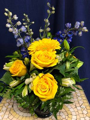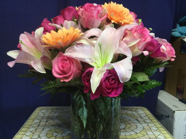 "Flowers were very pretty. My son really liked them. The photo you sent really helped since I did not get to see them in person. It was made and delivered in just a couple hours. I was really surprised. Thank you for an exceptional job!!"